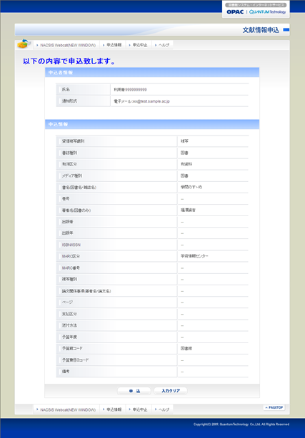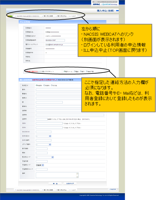 利用者が文献の複写依頼や貸借依頼の申込を行うことができます
